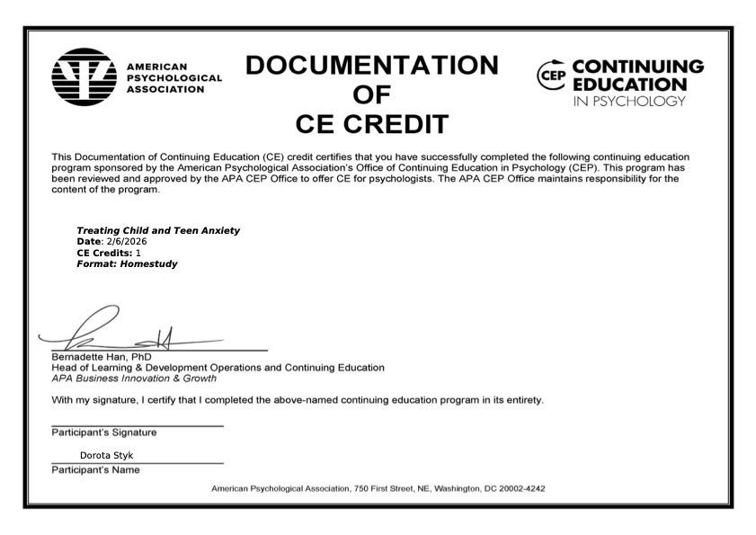 Certifications: 248 CPD, CME and CE courses in Psychology, Neuroscience and Research Methods accredited by: American Psychological Association (APA), Oxford University, The Stanford University School of Medicine, Yale University, King’s College London, among others.