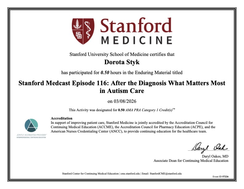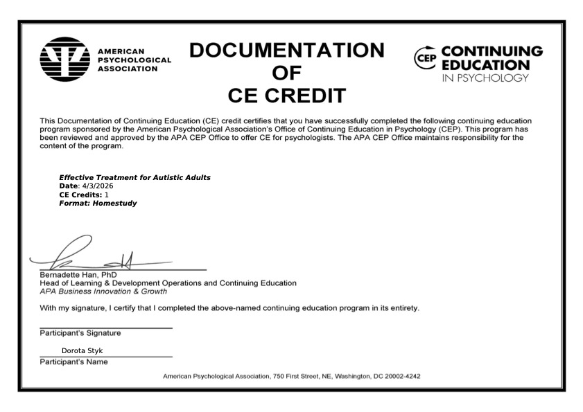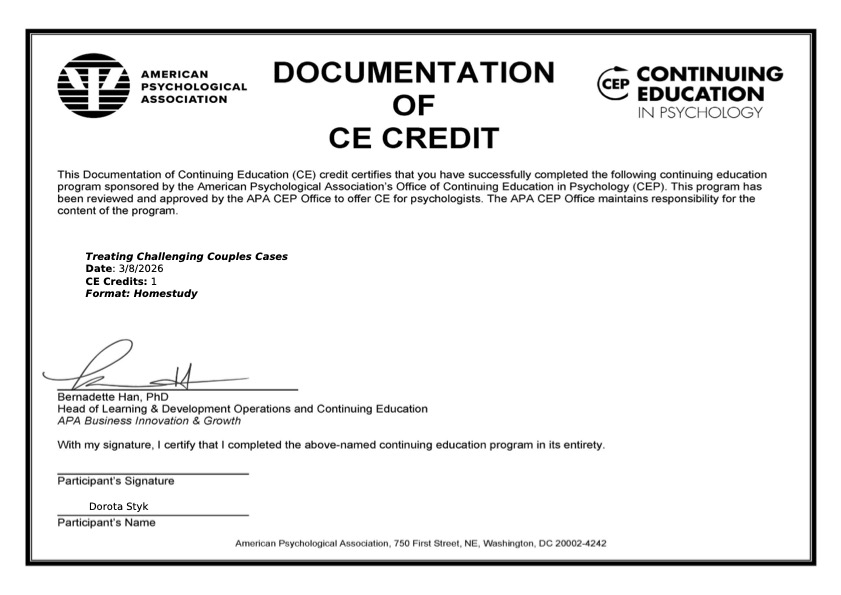 Certifications: 251 CPD, CME and CE courses in Psychology, Neuroscience and Research Methods accredited by: American Psychological Association (APA), Oxford University, The Stanford University School of Medicine, Yale University, King’s College London, among others.