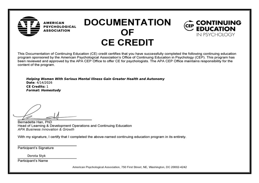 Certifications: 254 CPD, CME and CE courses in Psychology, Neuroscience and Research Methods accredited by: American Psychological Association (APA), Oxford University, The Stanford University School of Medicine, Yale University, King’s College London, among others.